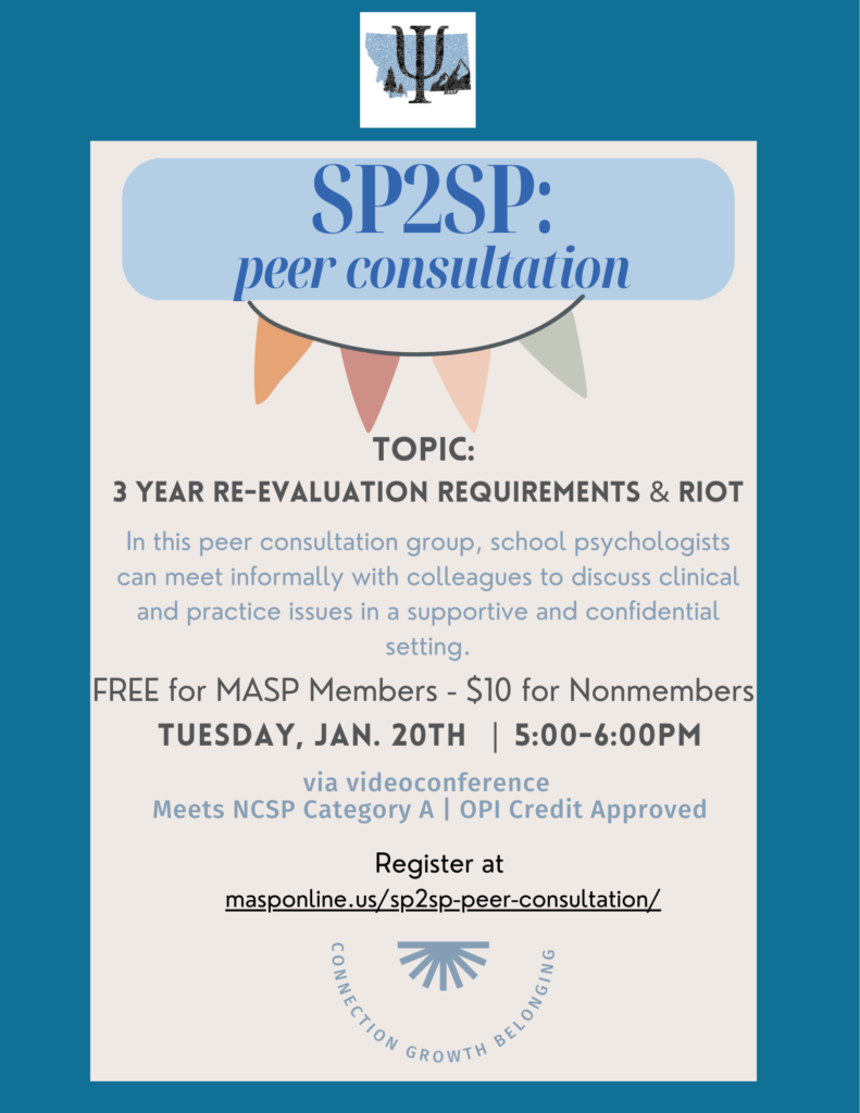 Join MASP online for our next SP2SP of the school year on Tuesday, January 20th from 5-6pm. This event is free for MASP members and only $10 for non-members, where all attendees can earn OPI and NCSP credit.